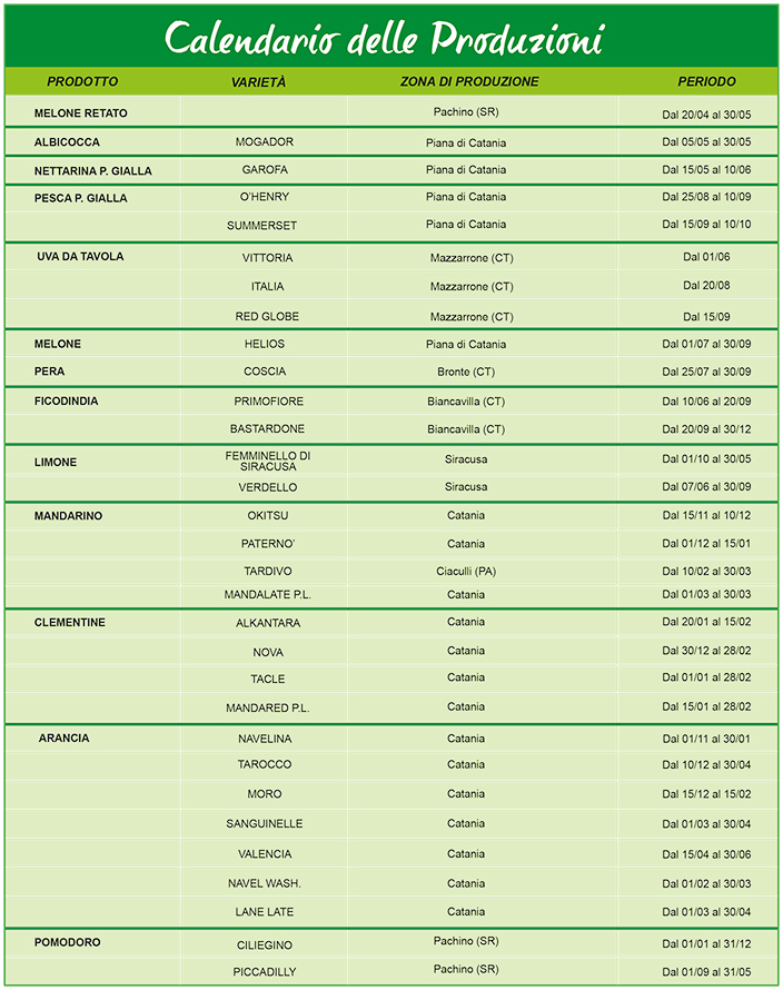 I prodotti sono coltivati in aperta campagna nel pieno rispetto dei cicli naturali, con l'applicazione dei metodi di produzione a lotta integrata. |